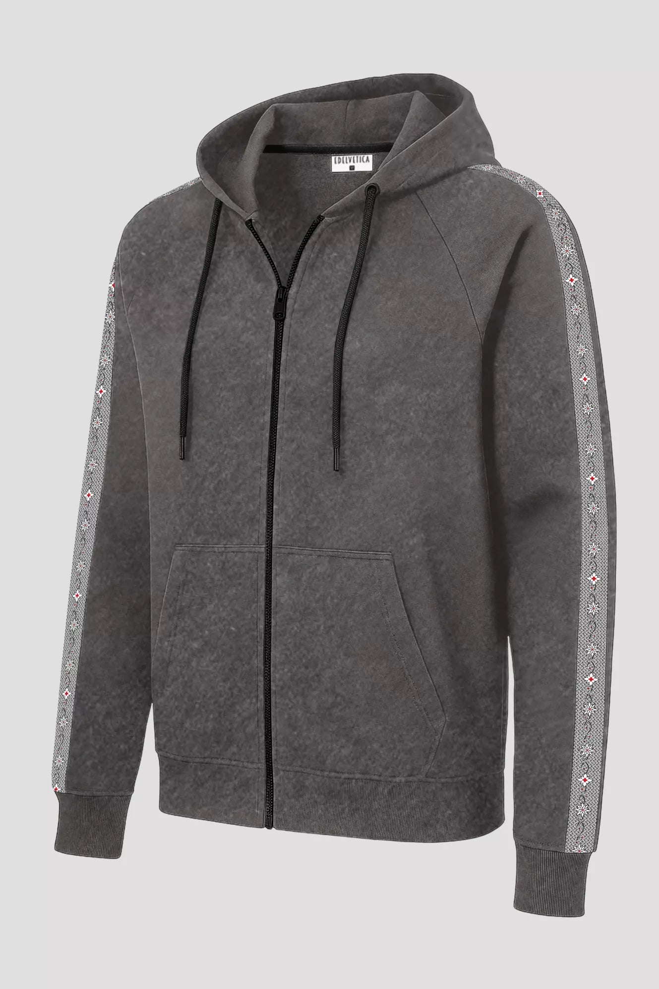 Diese Sweatjacke besticht durch ihr einzigartiges Design mit Edelweiss-Streifen an den Armen. Dieses Detail verleiht der Jacke einen besonderen Charme und hebt sie von gewöhnlichen Modellen ab.