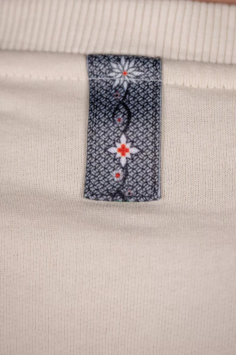 Dezentes Edelweiss-Logo auf der Brust